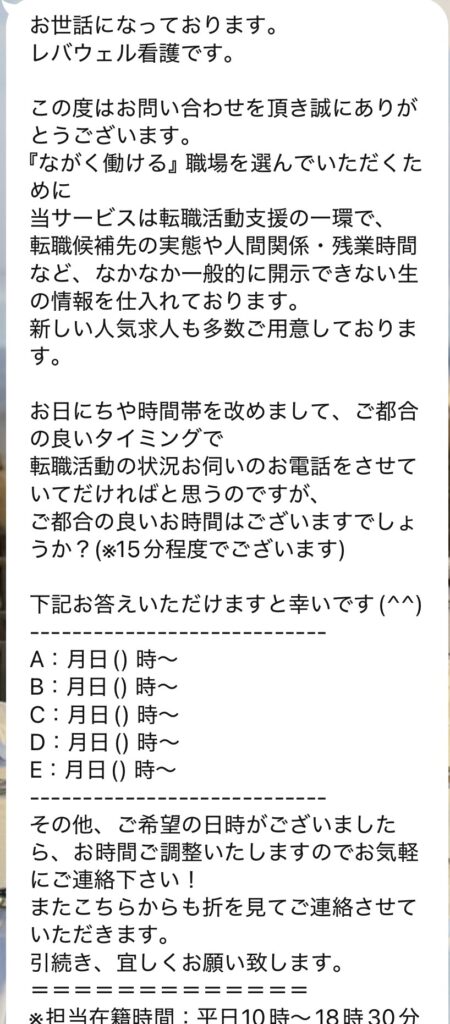 レバウェル看護とのLINEのやりとり